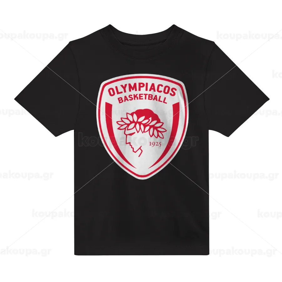 Olympiacos B.C., Άνετο παιδικό T-Shirt ΜΑΥΡΟ από 100% βαμβάκι, για κάθε μέρα. Vegan & OEKO-TEX πιστοποιημένο.