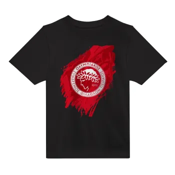 Olympiacos F.C., Άνετο παιδικό T-Shirt ΜΑΥΡΟ από 100% βαμβάκι, για κάθε μέρα. Vegan & OEKO-TEX πιστοποιημένο.
