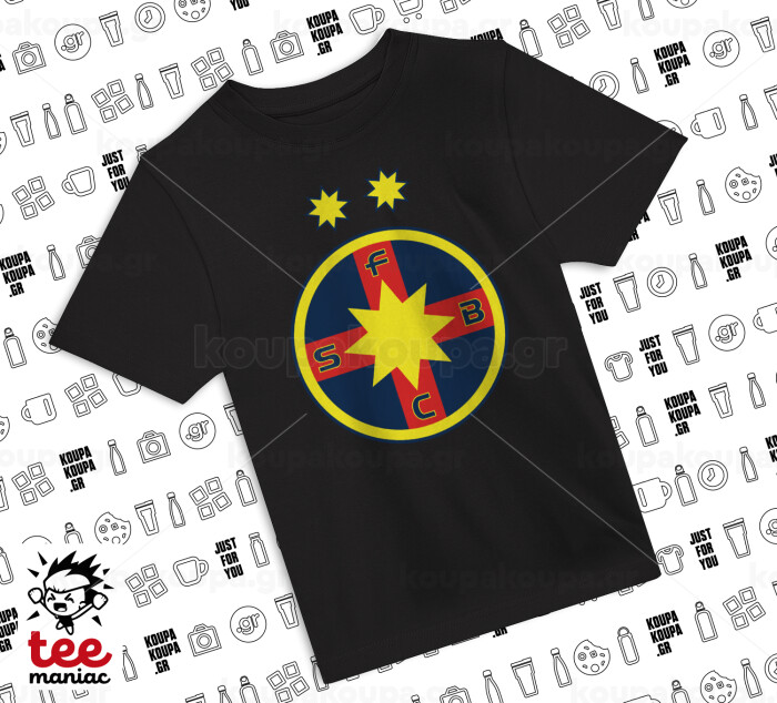 FC Steaua Bucuresti (FCSB), Άνετο παιδικό T-Shirt ΜΑΥΡΟ από 100% βαμβάκι, για κάθε μέρα. Vegan & OEKO-TEX πιστοποιημένο.