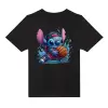 Stitch Basketball, Άνετο παιδικό T-Shirt ΜΑΥΡΟ από 100% βαμβάκι, για κάθε μέρα. Vegan & OEKO-TEX πιστοποιημένο.
