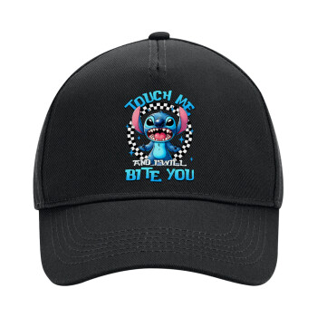 Stitch Touch Me And I Will Bite You, Άνετο παιδικό T-Shirt ΜΑΥΡΟ από 100% βαμβάκι, για κάθε μέρα. Vegan & OEKO-TEX πιστοποιημένο.