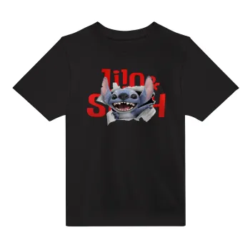 Stitch movie, Άνετο παιδικό T-Shirt ΜΑΥΡΟ από 100% βαμβάκι, για κάθε μέρα. Vegan & OEKO-TEX πιστοποιημένο.