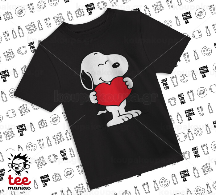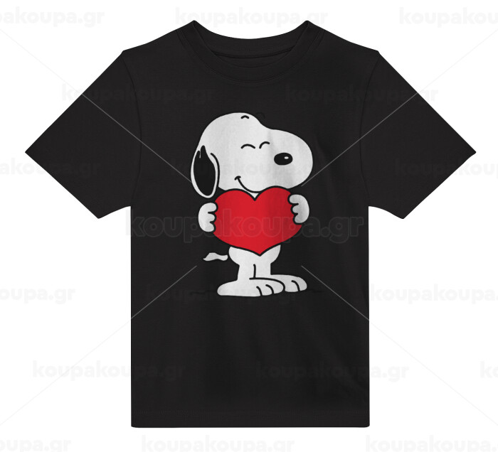 Snoopy takemy heart, Άνετο παιδικό T-Shirt ΜΑΥΡΟ από 100% βαμβάκι, για κάθε μέρα. Vegan & OEKO-TEX πιστοποιημένο.