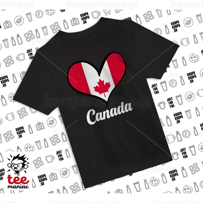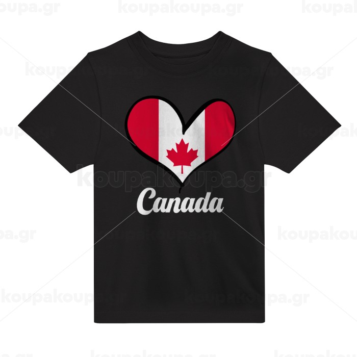 Canada flag, Άνετο παιδικό T-Shirt ΜΑΥΡΟ από 100% βαμβάκι, για κάθε μέρα. Vegan & OEKO-TEX πιστοποιημένο.
