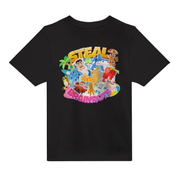 Roblox Steal a Brainrot, Άνετο παιδικό T-Shirt ΜΑΥΡΟ από 100% βαμβάκι, για κάθε μέρα. Vegan & OEKO-TEX πιστοποιημένο.