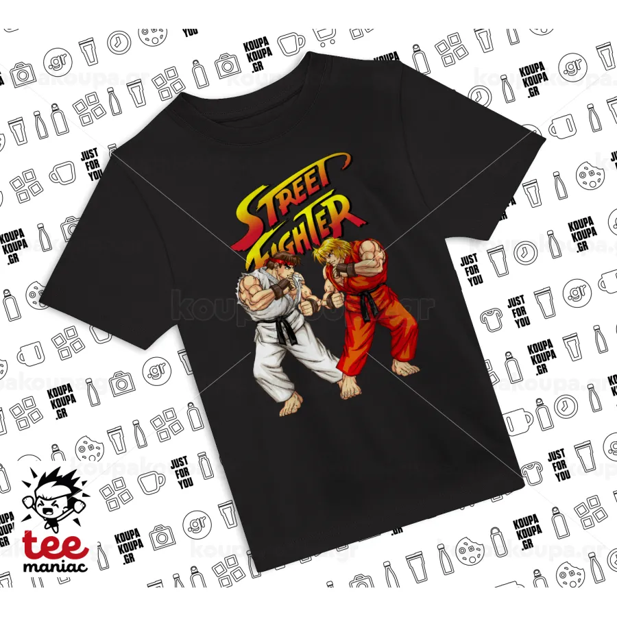 Street fighter, Άνετο παιδικό T-Shirt ΜΑΥΡΟ από 100% βαμβάκι, για κάθε μέρα. Vegan & OEKO-TEX πιστοποιημένο.