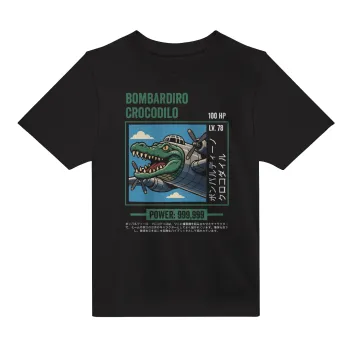Bombardiro Crocodilo, Άνετο παιδικό T-Shirt ΜΑΥΡΟ από 100% βαμβάκι, για κάθε μέρα. Vegan & OEKO-TEX πιστοποιημένο.