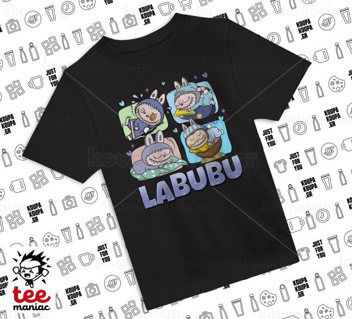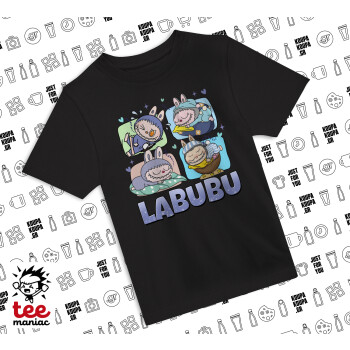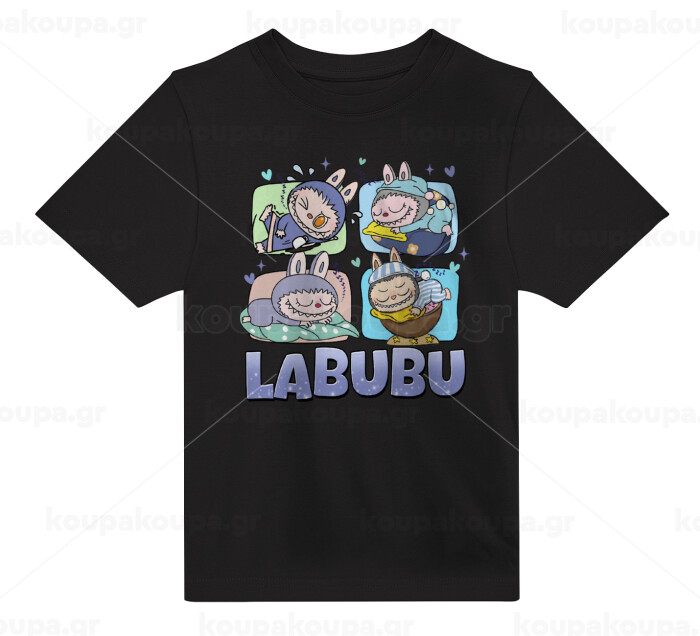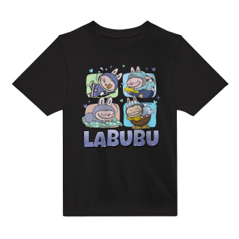 Labubu, Άνετο παιδικό T-Shirt ΜΑΥΡΟ από 100% βαμβάκι, για κάθε μέρα. Vegan & OEKO-TEX πιστοποιημένο.