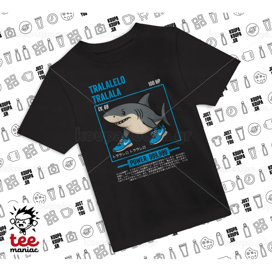 Tralalero Tralala, Άνετο παιδικό T-Shirt ΜΑΥΡΟ από 100% βαμβάκι, για κάθε μέρα. Vegan & OEKO-TEX πιστοποιημένο.