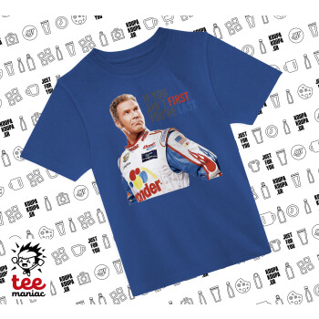 If You Ain't First You're Last Ricky Bobby, Talladega Nights, Παιδικό T-Shirt ΜΠΛΕ από 100% βαμβάκι, για κάθε μέρα. Vegan & OEKO-TEX πιστοποιημένο.