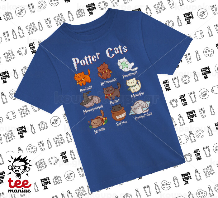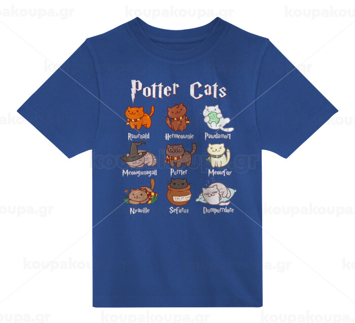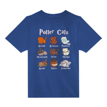 Potter Cats, Παιδικό T-Shirt ΜΠΛΕ από 100% βαμβάκι, για κάθε μέρα. Vegan & OEKO-TEX πιστοποιημένο.