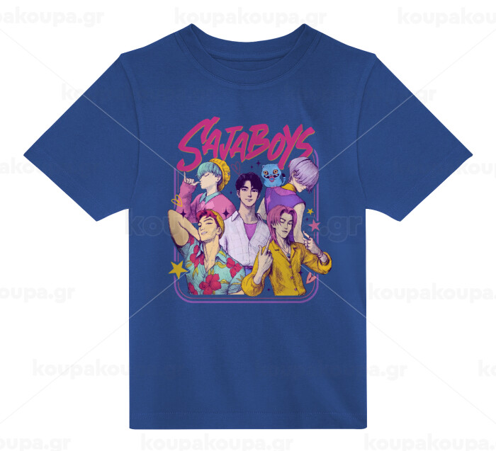 Huntrix Saja Boys, Παιδικό T-Shirt ΜΠΛΕ από 100% βαμβάκι, για κάθε μέρα. Vegan & OEKO-TEX πιστοποιημένο.