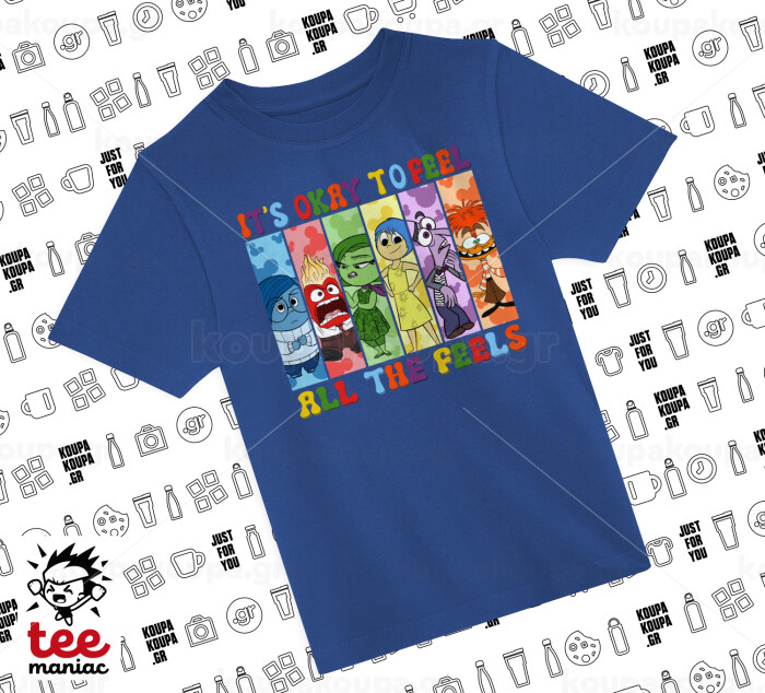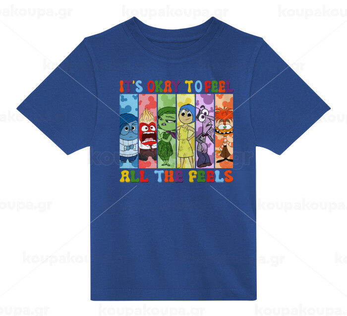 Inside Out It's Okay To Feel All The Feels , Παιδικό T-Shirt ΜΠΛΕ από 100% βαμβάκι, για κάθε μέρα. Vegan & OEKO-TEX πιστοποιημένο.