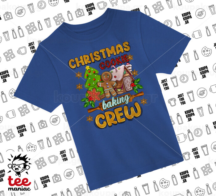 Christmas Cookie Baking Crew, Παιδικό T-Shirt ΜΠΛΕ από 100% βαμβάκι, για κάθε μέρα. Vegan & OEKO-TEX πιστοποιημένο.