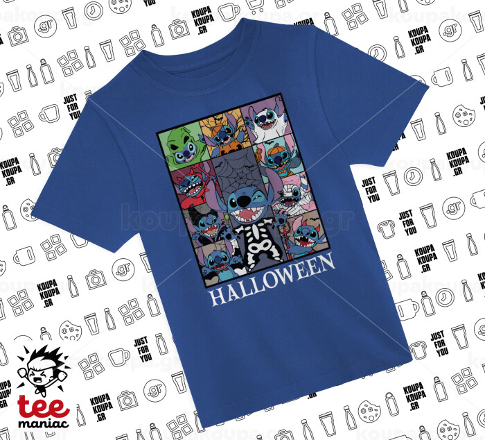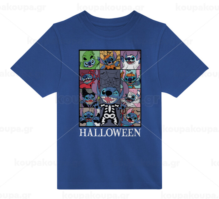 Stitch Halloween, Παιδικό T-Shirt ΜΠΛΕ από 100% βαμβάκι, για κάθε μέρα. Vegan & OEKO-TEX πιστοποιημένο.