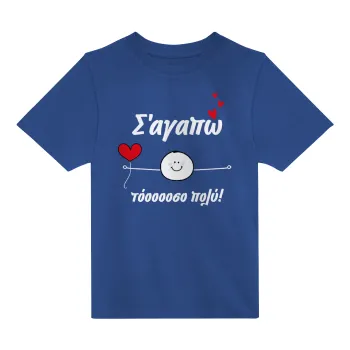 Σ΄αγαπώ τόοοοσο πολύ (Αγόρι)!!!, Παιδικό T-Shirt ΜΠΛΕ από 100% βαμβάκι, για κάθε μέρα. Vegan & OEKO-TEX πιστοποιημένο.