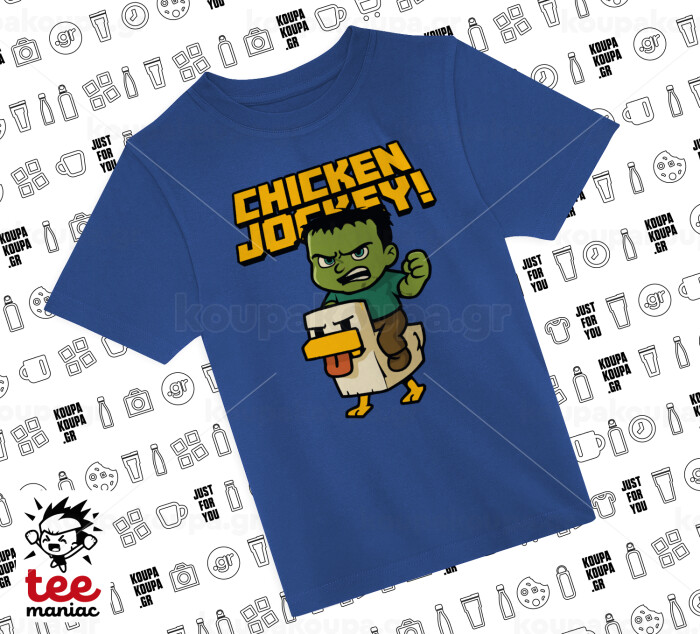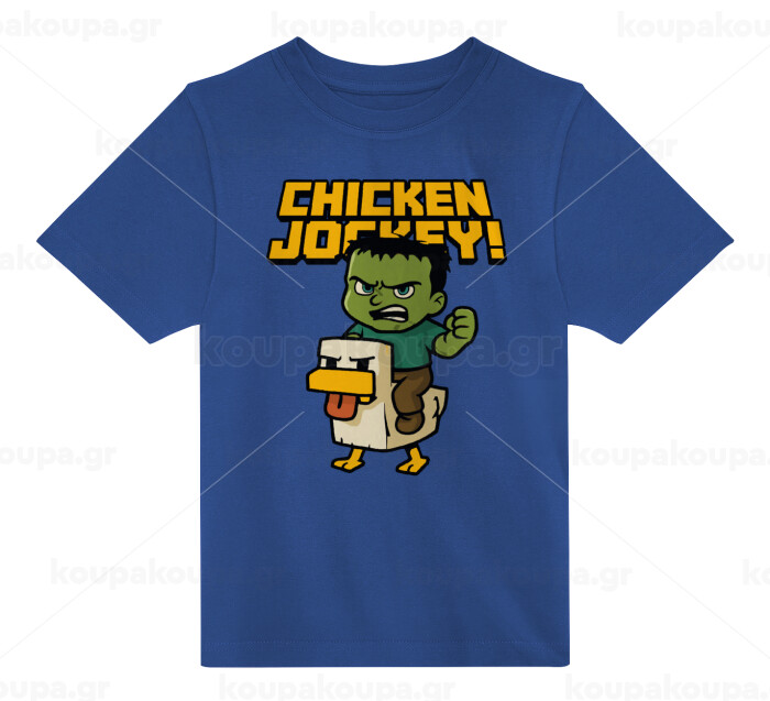 Chicken Jockey, Παιδικό T-Shirt ΜΠΛΕ από 100% βαμβάκι, για κάθε μέρα. Vegan & OEKO-TEX πιστοποιημένο.