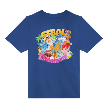 Roblox Steal a Brainrot, Παιδικό T-Shirt ΜΠΛΕ από 100% βαμβάκι, για κάθε μέρα. Vegan & OEKO-TEX πιστοποιημένο.