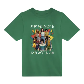 Friends Dont Lie, Stranger Things, Άνετο παιδικό T-Shirt ΠΡΑΣΙΝΟ από 100% βαμβάκι, για κάθε μέρα. Vegan & OEKO-TEX πιστοποιημένο.