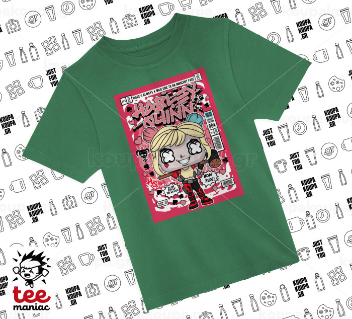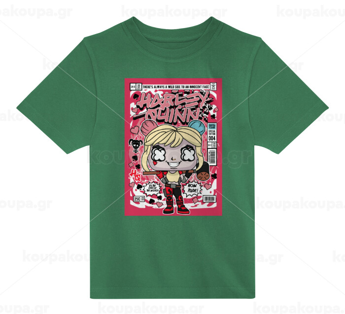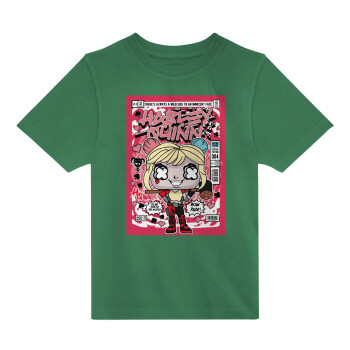Harley Quinn (Χάρλεϊ Κουίν), Άνετο παιδικό T-Shirt ΠΡΑΣΙΝΟ από 100% βαμβάκι, για κάθε μέρα. Vegan & OEKO-TEX πιστοποιημένο.