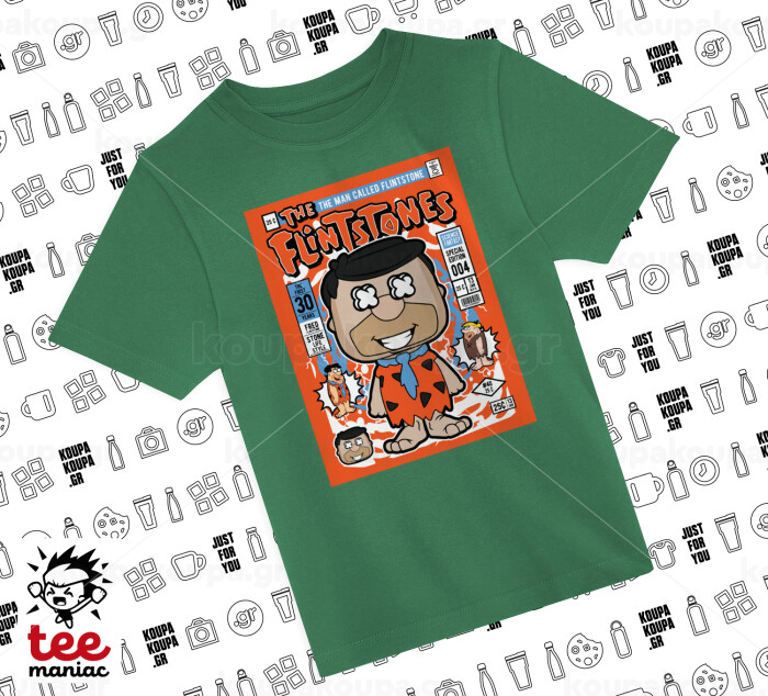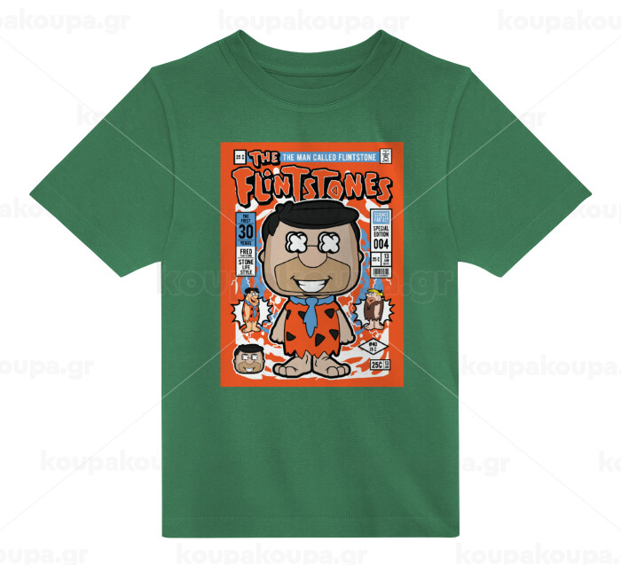 The flintstones, Άνετο παιδικό T-Shirt ΠΡΑΣΙΝΟ από 100% βαμβάκι, για κάθε μέρα. Vegan & OEKO-TEX πιστοποιημένο.
