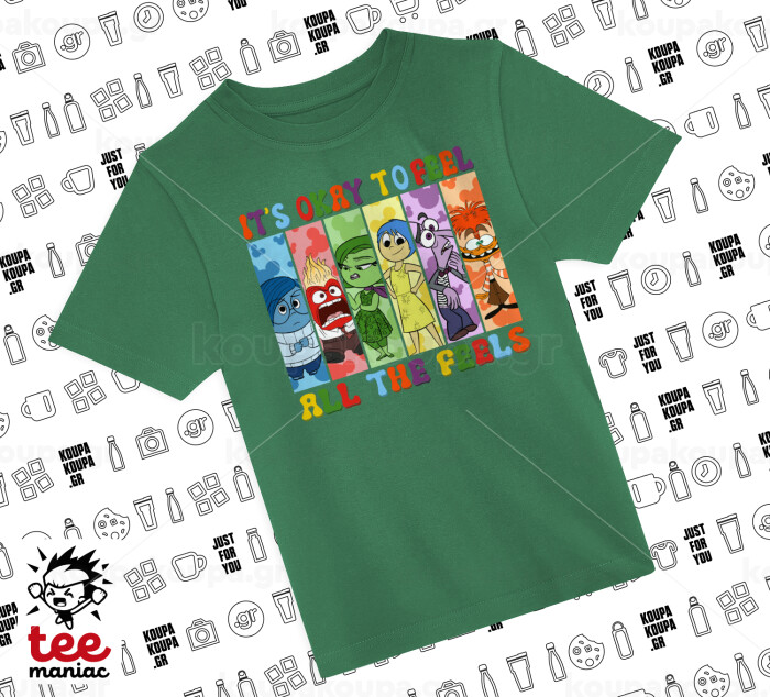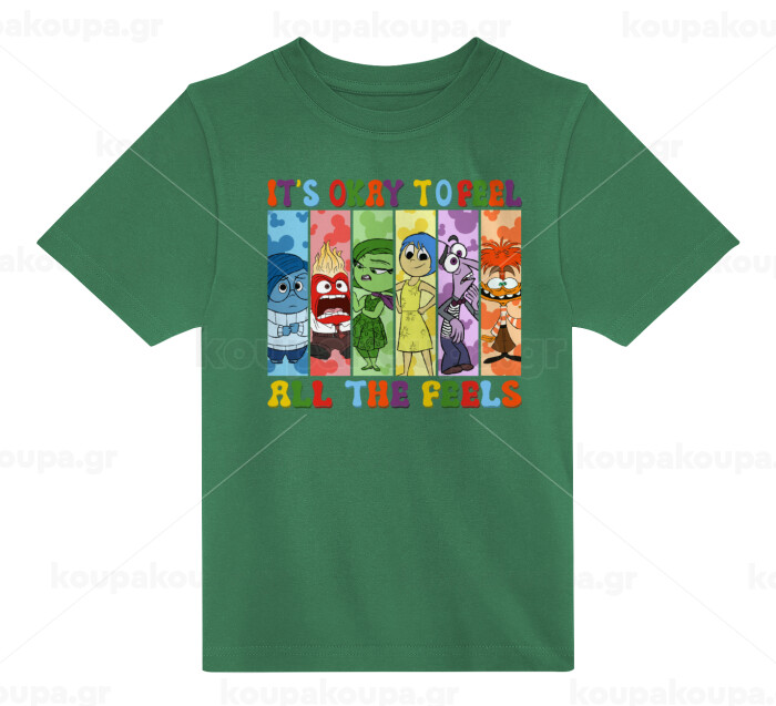 Inside Out It's Okay To Feel All The Feels , Άνετο παιδικό T-Shirt ΠΡΑΣΙΝΟ από 100% βαμβάκι, για κάθε μέρα. Vegan & OEKO-TEX πιστοποιημένο.