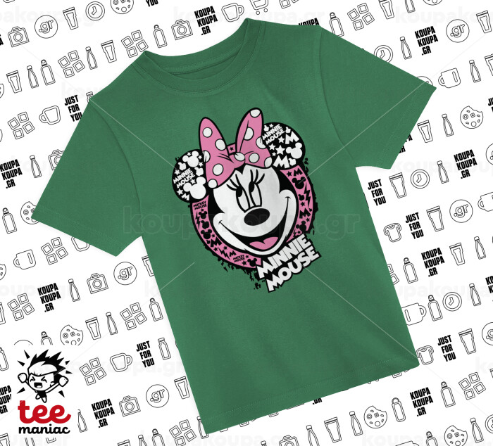 Minnie mouse, Άνετο παιδικό T-Shirt ΠΡΑΣΙΝΟ από 100% βαμβάκι, για κάθε μέρα. Vegan & OEKO-TEX πιστοποιημένο.