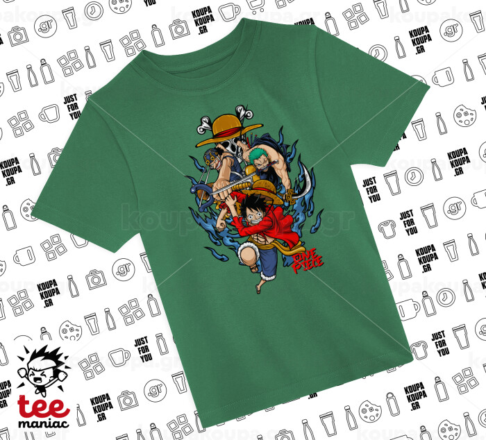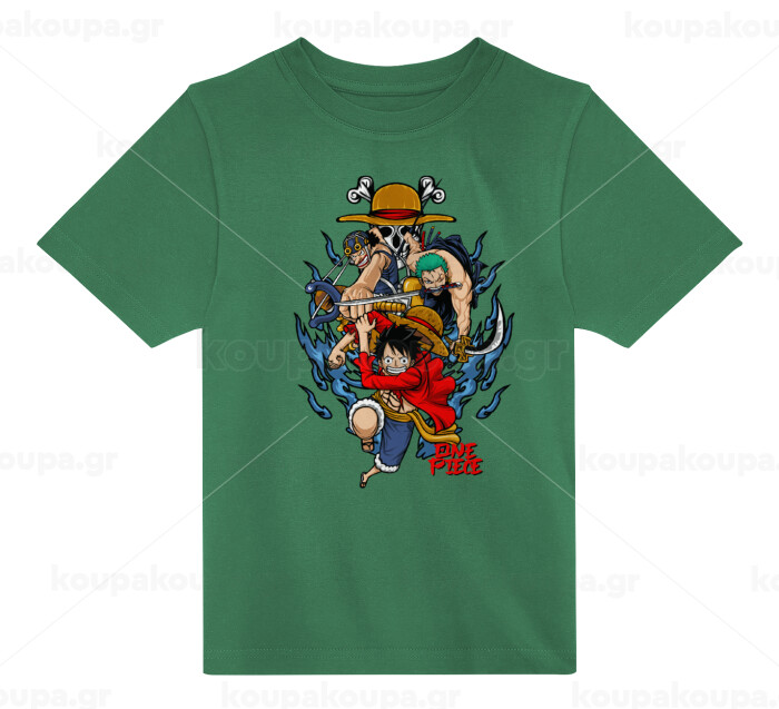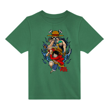 One Piece, Άνετο παιδικό T-Shirt ΠΡΑΣΙΝΟ από 100% βαμβάκι, για κάθε μέρα. Vegan & OEKO-TEX πιστοποιημένο.