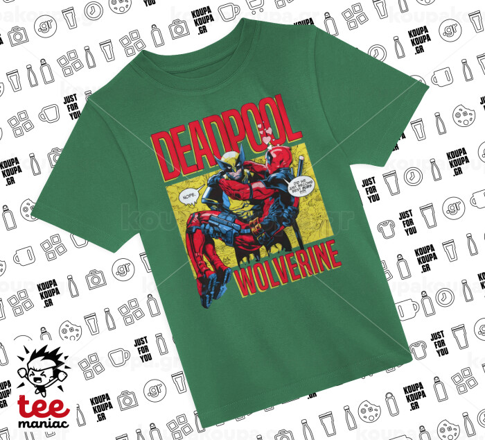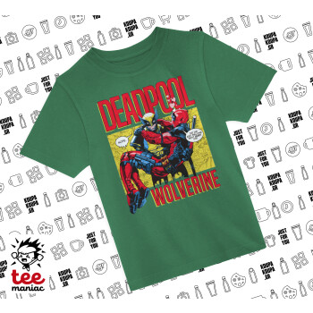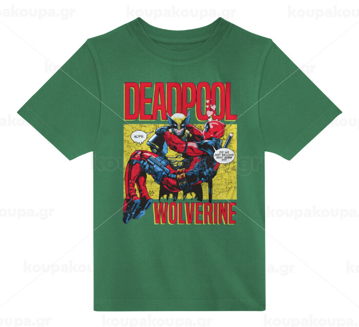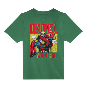 Superhero Deadpool Wolverine, Άνετο παιδικό T-Shirt ΠΡΑΣΙΝΟ από 100% βαμβάκι, για κάθε μέρα. Vegan & OEKO-TEX πιστοποιημένο.