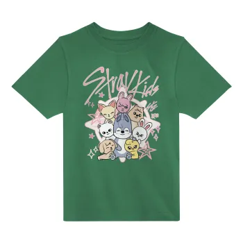 Stray Kids Pink, Άνετο παιδικό T-Shirt ΠΡΑΣΙΝΟ από 100% βαμβάκι, για κάθε μέρα. Vegan & OEKO-TEX πιστοποιημένο.