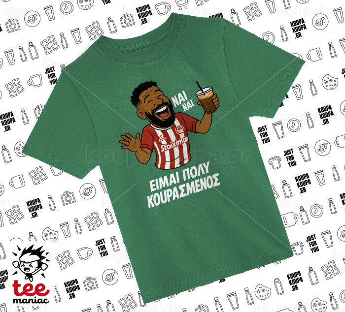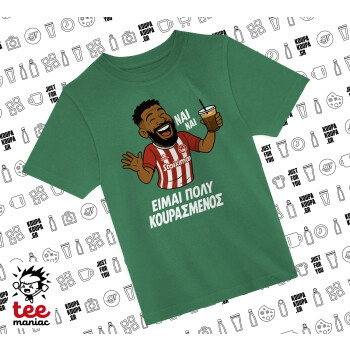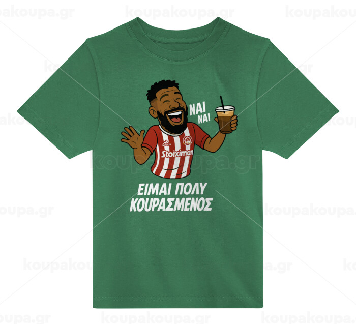 Ροντινέι, "ΠΟΛΥ ΚΟΥΡΑΣΜΕΝΟΣ", Άνετο παιδικό T-Shirt ΠΡΑΣΙΝΟ από 100% βαμβάκι, για κάθε μέρα. Vegan & OEKO-TEX πιστοποιημένο.