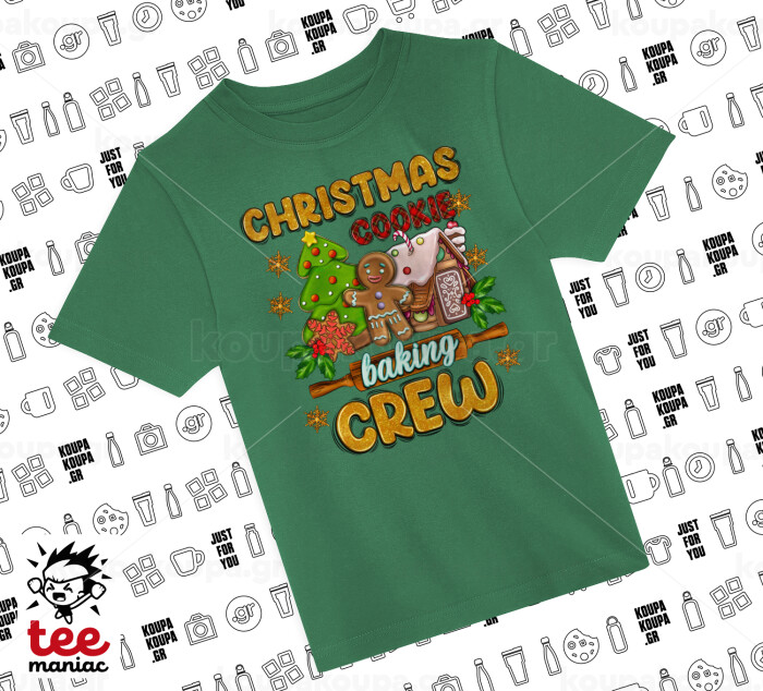 Christmas Cookie Baking Crew, Άνετο παιδικό T-Shirt ΠΡΑΣΙΝΟ από 100% βαμβάκι, για κάθε μέρα. Vegan & OEKO-TEX πιστοποιημένο.