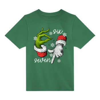 Christmas Meme SIX SEVEN (67), Άνετο παιδικό T-Shirt ΠΡΑΣΙΝΟ από 100% βαμβάκι, για κάθε μέρα. Vegan & OEKO-TEX πιστοποιημένο.