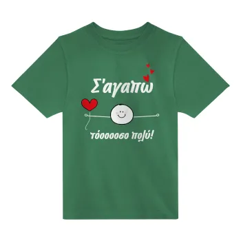 Σ΄αγαπώ τόοοοσο πολύ (Αγόρι)!!!, Άνετο παιδικό T-Shirt ΠΡΑΣΙΝΟ από 100% βαμβάκι, για κάθε μέρα. Vegan & OEKO-TEX πιστοποιημένο.