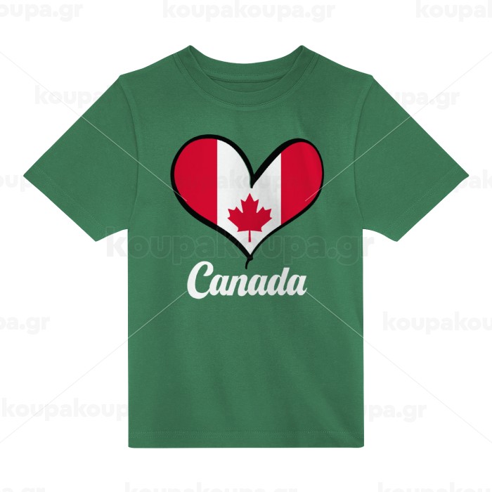 Canada flag, Άνετο παιδικό T-Shirt ΠΡΑΣΙΝΟ από 100% βαμβάκι, για κάθε μέρα. Vegan & OEKO-TEX πιστοποιημένο.