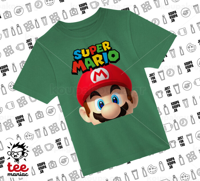 Super mario, Άνετο παιδικό T-Shirt ΠΡΑΣΙΝΟ από 100% βαμβάκι, για κάθε μέρα. Vegan & OEKO-TEX πιστοποιημένο.
