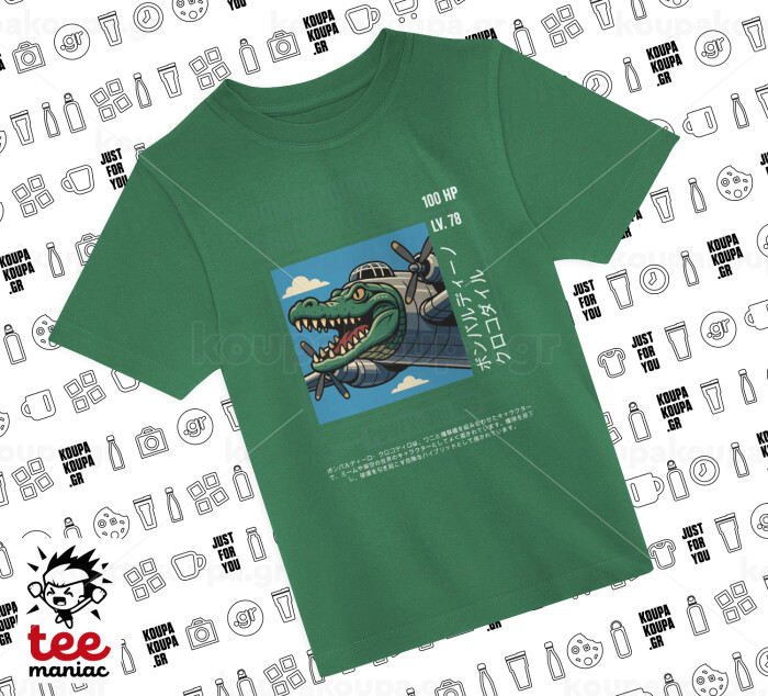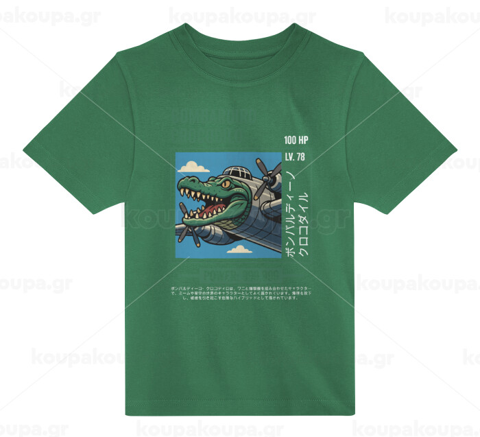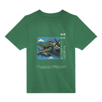 Bombardiro Crocodilo, Άνετο παιδικό T-Shirt ΠΡΑΣΙΝΟ από 100% βαμβάκι, για κάθε μέρα. Vegan & OEKO-TEX πιστοποιημένο.