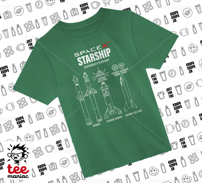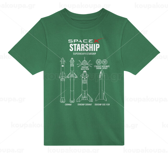 Space X, Άνετο παιδικό T-Shirt ΠΡΑΣΙΝΟ από 100% βαμβάκι, για κάθε μέρα. Vegan & OEKO-TEX πιστοποιημένο.
