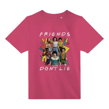 Friends Dont Lie, Stranger Things, ΡΟΖ παιδικό T-Shirt από 100% βαμβάκι, για κάθε μέρα. Vegan & OEKO-TEX πιστοποιημένο.