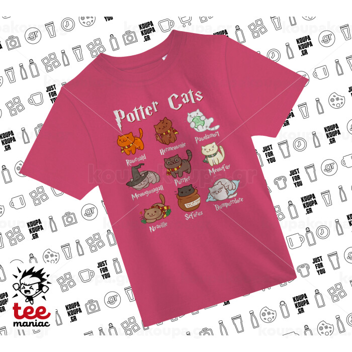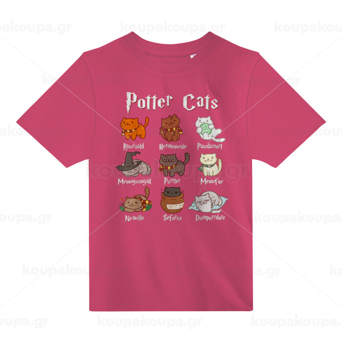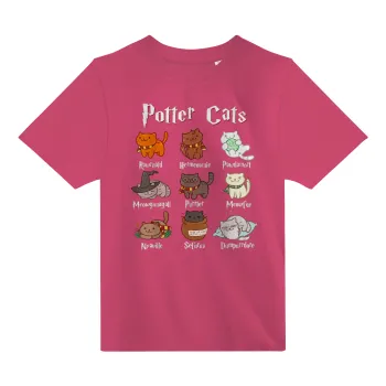 Potter Cats, ΡΟΖ παιδικό T-Shirt από 100% βαμβάκι, για κάθε μέρα. Vegan & OEKO-TEX πιστοποιημένο.