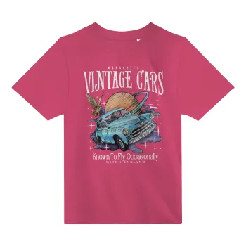 Wizard Flying Car, ΡΟΖ παιδικό T-Shirt από 100% βαμβάκι, για κάθε μέρα. Vegan & OEKO-TEX πιστοποιημένο.