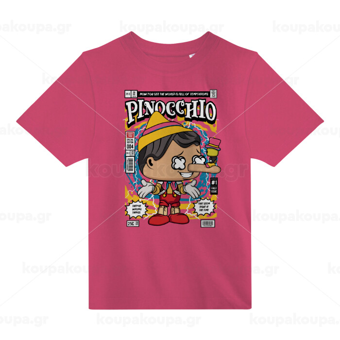 Pinocchio, ΡΟΖ παιδικό T-Shirt από 100% βαμβάκι, για κάθε μέρα. Vegan & OEKO-TEX πιστοποιημένο.