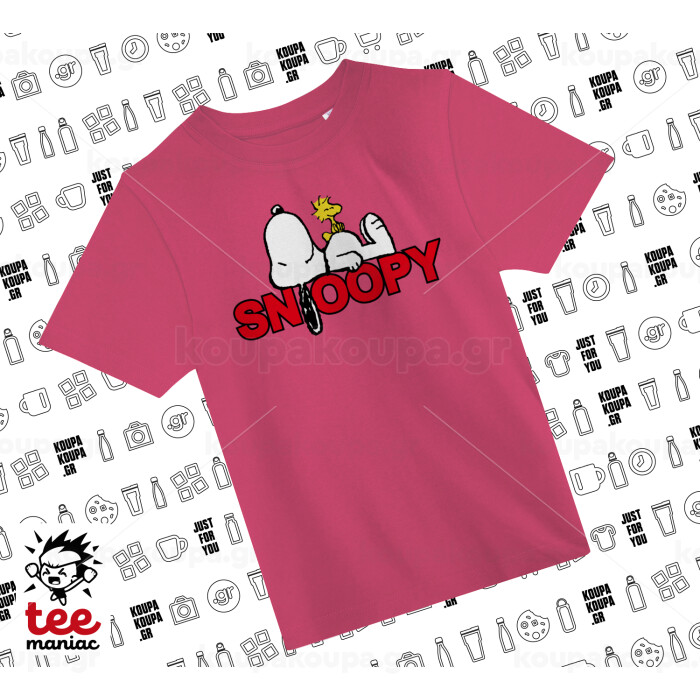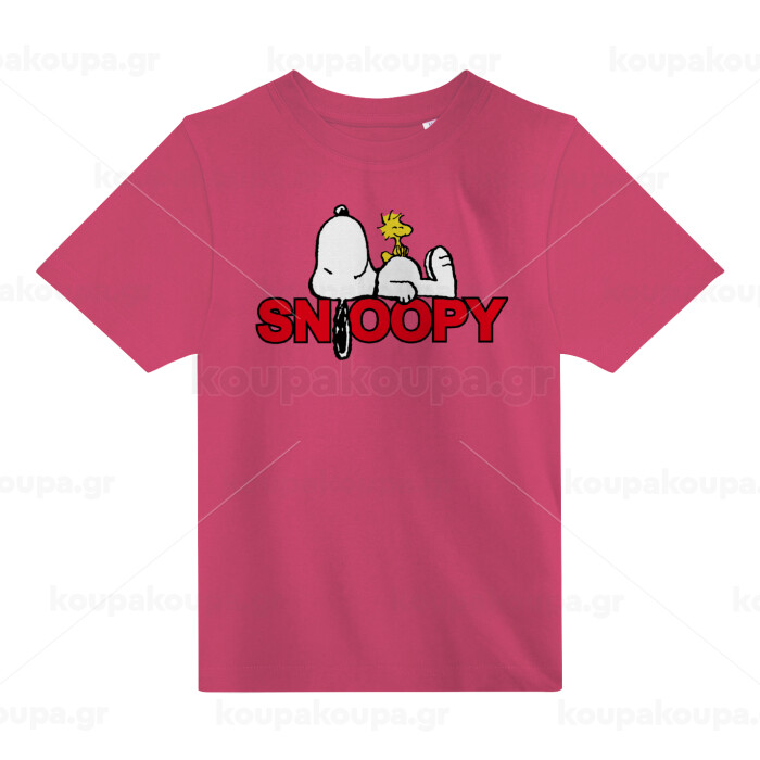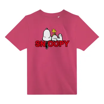 Snoopy sleep, ΡΟΖ παιδικό T-Shirt από 100% βαμβάκι, για κάθε μέρα. Vegan & OEKO-TEX πιστοποιημένο.