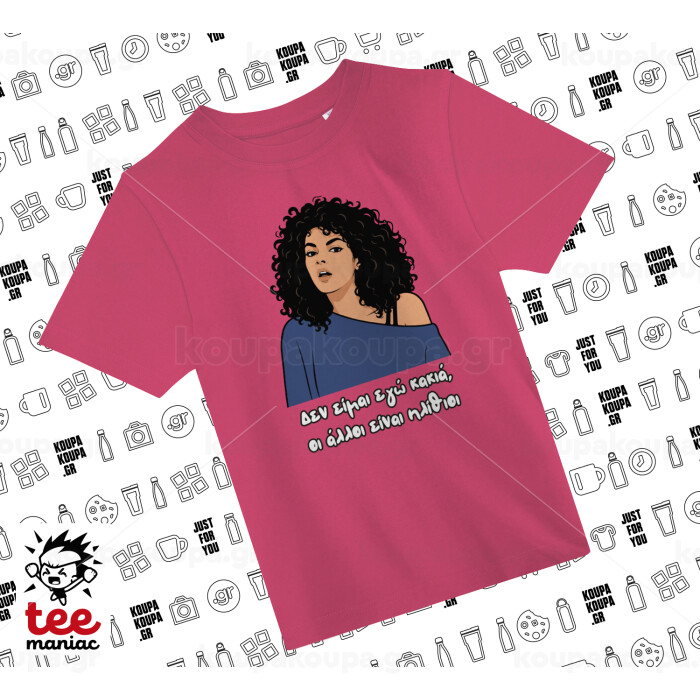 Δεν είμαι εγώ κακιά, ΡΟΖ παιδικό T-Shirt από 100% βαμβάκι, για κάθε μέρα. Vegan & OEKO-TEX πιστοποιημένο.