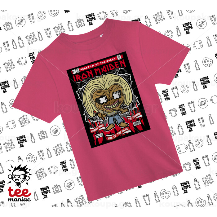 Iron maiden (eddie), ΡΟΖ παιδικό T-Shirt από 100% βαμβάκι, για κάθε μέρα. Vegan & OEKO-TEX πιστοποιημένο.