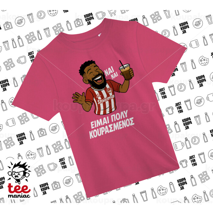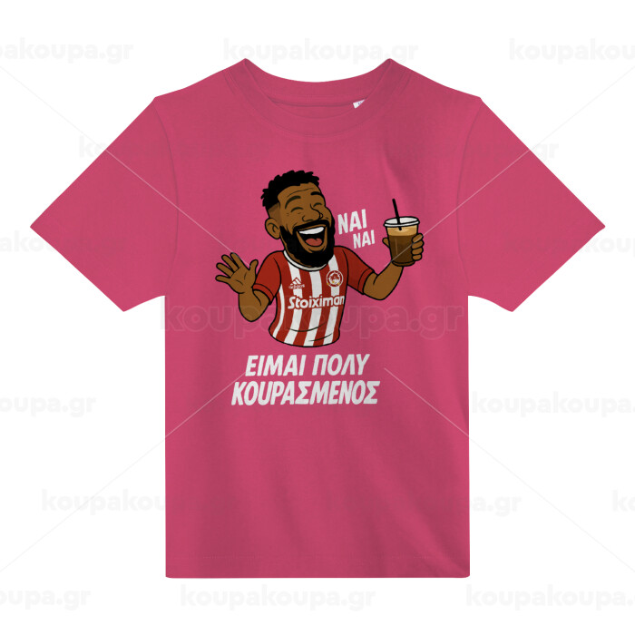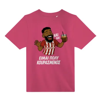Ροντινέι, "ΠΟΛΥ ΚΟΥΡΑΣΜΕΝΟΣ", ΡΟΖ παιδικό T-Shirt από 100% βαμβάκι, για κάθε μέρα. Vegan & OEKO-TEX πιστοποιημένο.