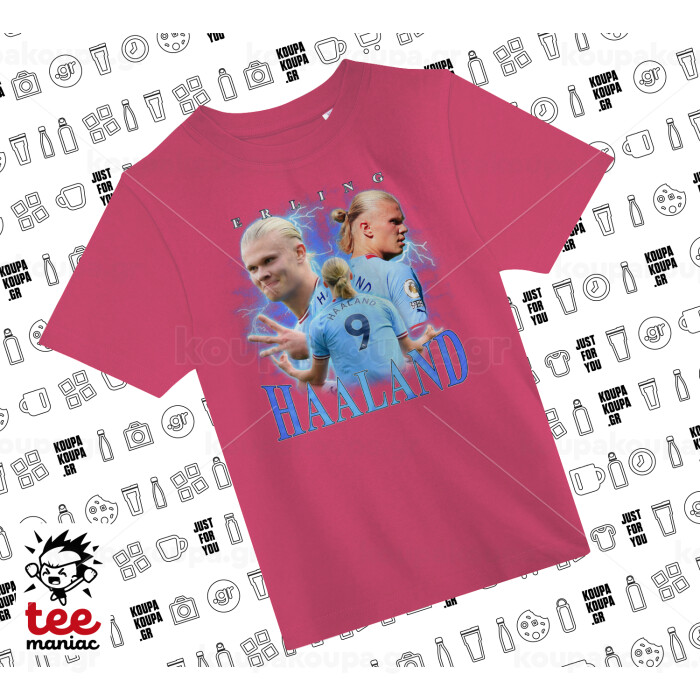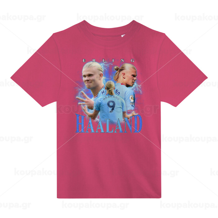 Erling Haaland, ΡΟΖ παιδικό T-Shirt από 100% βαμβάκι, για κάθε μέρα. Vegan & OEKO-TEX πιστοποιημένο.