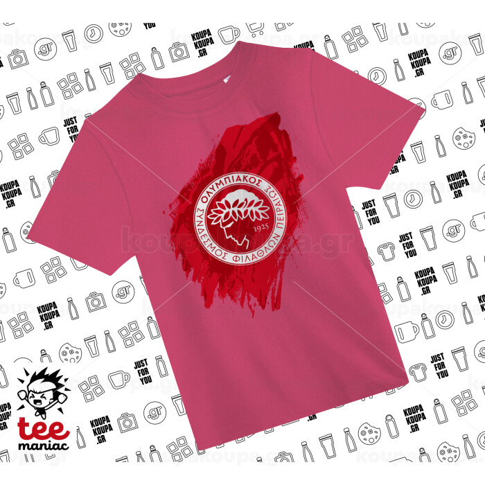 Olympiacos F.C., ΡΟΖ παιδικό T-Shirt από 100% βαμβάκι, για κάθε μέρα. Vegan & OEKO-TEX πιστοποιημένο.