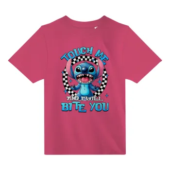 Stitch Touch Me And I Will Bite You, ΡΟΖ παιδικό T-Shirt από 100% βαμβάκι, για κάθε μέρα. Vegan & OEKO-TEX πιστοποιημένο.