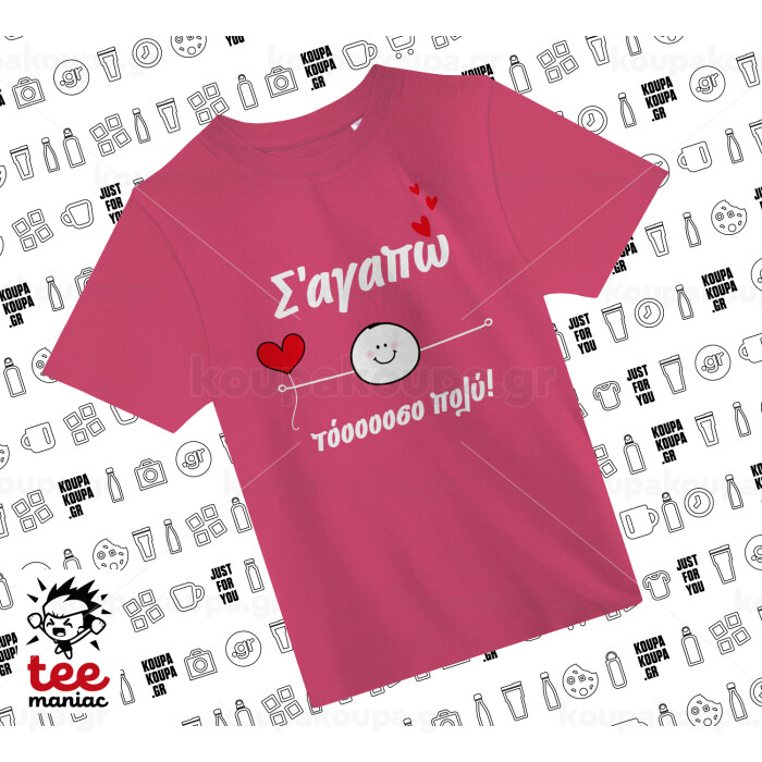 Σ΄αγαπώ τόοοοσο πολύ (Αγόρι)!!!, ΡΟΖ παιδικό T-Shirt από 100% βαμβάκι, για κάθε μέρα. Vegan & OEKO-TEX πιστοποιημένο.